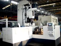 主減速器殼三軸鏜孔車端面機(jī)床,本機(jī)床是為粗加工、半精加工主減速器殼三孔及車削主減速器殼主錐端面而設(shè)計(jì)的專用機(jī)床。本機(jī)床采用立臥復(fù)合式三面結(jié)構(gòu),左右端各布滑臺和鏜頭,用于兩端孔的加工。立頭采用西德標(biāo)準(zhǔn)的DSS系列雙向刀盤鏜車頭,用于主錐端面孔加工,鏜車頭主電機(jī)采用變頻調(diào)速,以滿足鏜大小孔時(shí)切削速度的變化。中間采用數(shù)控滑臺,滑臺上安裝液壓夾具,以適應(yīng)不同品種的偏置距。