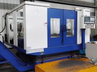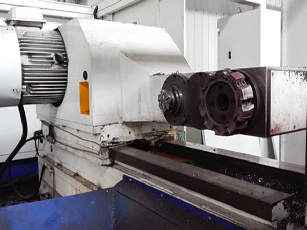 火車鉤尾框承載面加工專機(jī),本機(jī)床為臥式單面布置,前面數(shù)控移動工作臺上安裝有回轉(zhuǎn)夾具,后面數(shù)控移動工作臺上配有專用雙軸銑削動力頭。夾具具有自動回轉(zhuǎn)及回轉(zhuǎn)到位后自動鎖緊功能,回轉(zhuǎn)角度由固定擋鐵控制,更換品種時需更換擋鐵塊。本機(jī)床主要用于13B、17型、力拓40T鉤尾框承載面的銑削加工,生產(chǎn)節(jié)拍:4分鐘/件。工件以底面、側(cè)面及尾部定位,液壓油缸夾緊。人工吊裝上下料,一次一件,液壓夾緊,數(shù)控系統(tǒng)控制,并配有獨立的液壓站、電氣柜、集中潤滑裝置。本機(jī)床加工剛性好,并適合多品種加工。